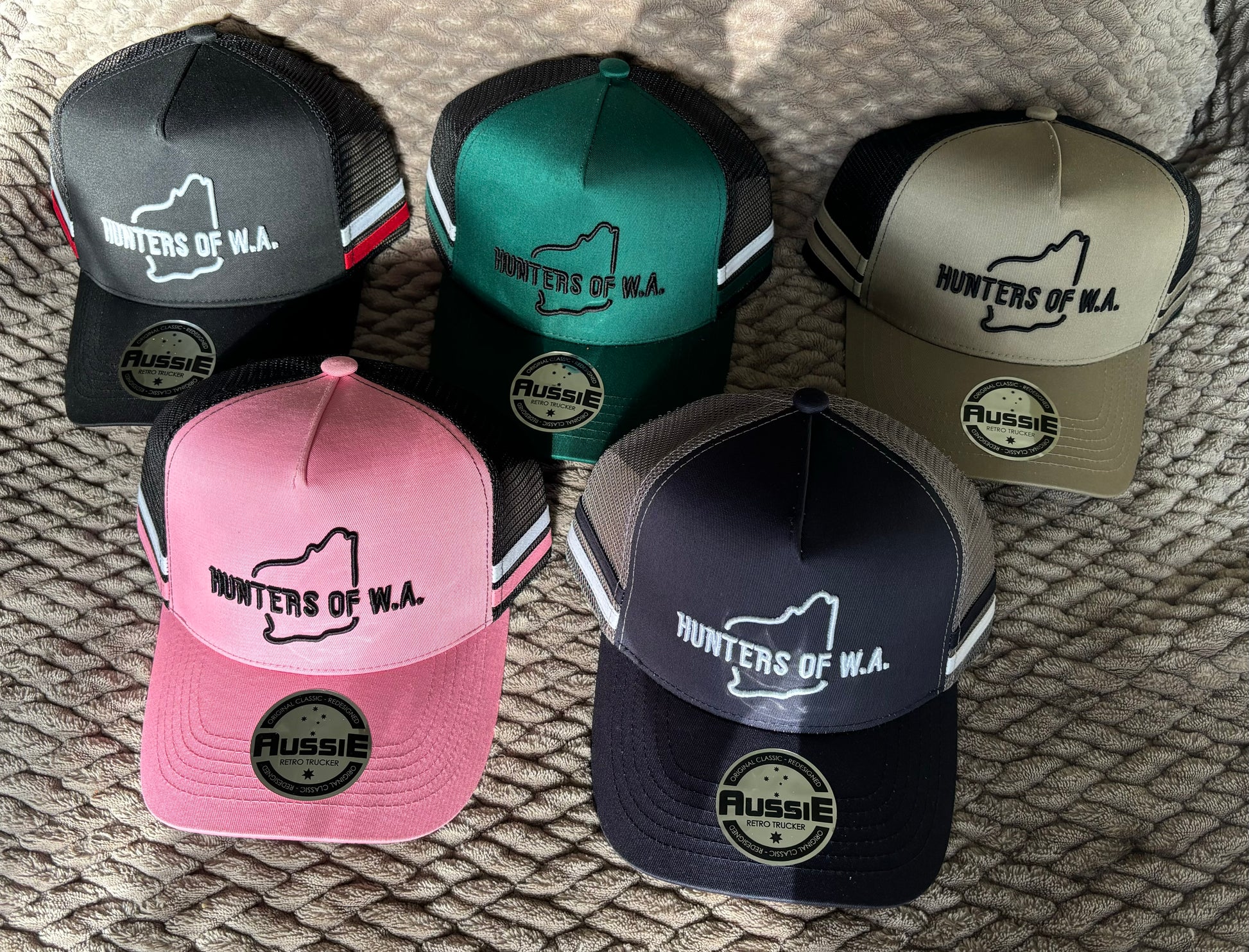 The five panel Flexifit deep trucker cap with a snap back closure is guaranteed to fit any head.