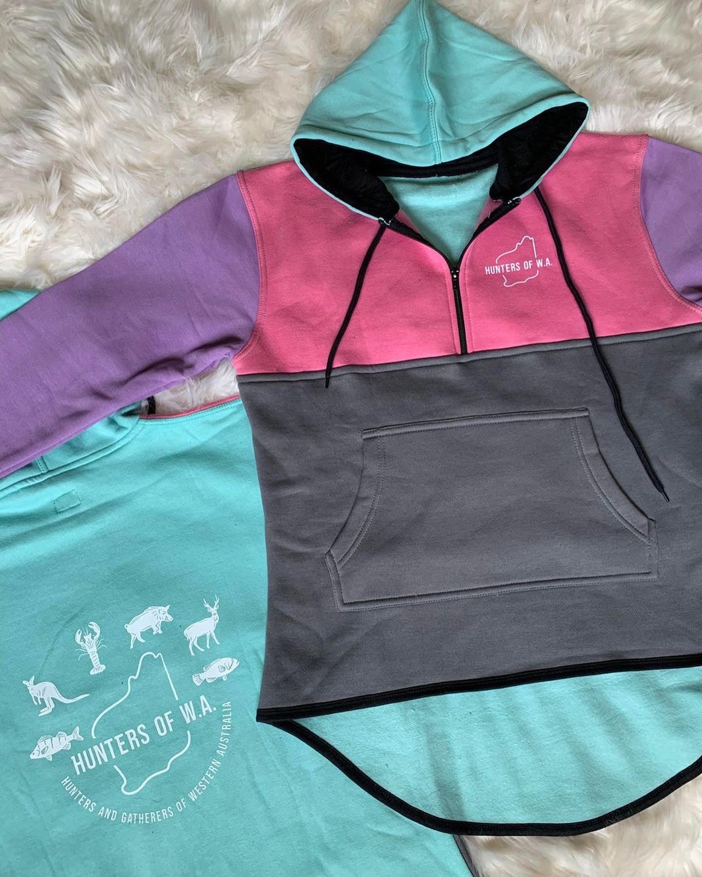 Half Zip with a long tail Pastel colours Hoody with White Print. Made with the thickest fabric, standard mens sizing with long arms and trust me you will love the tail!!